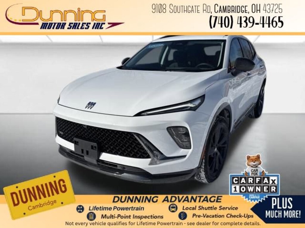 Recent Arrival! 2025 Buick Envision Sport Touring AWD 9-Speed Automatic 2.0L Turbocharged Summit White 30 Diagonal LCD Display, 4-Wheel Disc Brakes, 9 Speakers, ABS brakes, Air Conditioning, AM/FM radio: SiriusXM, Auto High-beam Headlights, Auto-dimming door mirrors, Auto-dimming Rear-View mirror, Automatic temperature control, Bose Premium 9-Speaker Audio System Feature, Brake assist, Bumpers: body-color, Compass, Driver door bin, Driver vanity mirror, Dual front impact airbags, Dual front side impact airbags, Electronic Stability Control, Emergency communication system: OnStar and Buick connected services capable, Exterior Parking Camera Rear, Four wheel independent suspension, Front anti-roll bar, Front reading lights, Heads-Up Display, Heated door mirrors, Knee airbag, Low tire pressure warning, Memory seat, Navigation System, Occupant sensing airbag, Overhead airbag, Panic alarm, Power door mirrors, Power driver seat, Power Liftgate, Power steering, Power windows, Preferred Equipment Group 1SL, Premium audio system: Buick Infotainment System, Radio data system, Radio: Infotainment Center, Rear anti-roll bar, Rear window defroster, Remote keyless entry, Security system, SiriusXM Trial Subscription, Speed control, Spoiler, Steering wheel mounted audio controls, Traction control, Wheels: 20 Carbon Flash Metallic Alloy, Wireless Apple CarPlay/Wireless Android Auto. 22/28 City/Highway MPG Odometer is 4401 miles below market average! Priced below KBB Fair Purchase Price!With the largest selection around, Guaranteed Credit Approval and the most competitive live market pricing... Dunning Gets it Done! A professional, courteous, low-pressure sales staff, touch-less car wash, Valvoline Quick Change Oil Lane, award-winning body shop and service department make it easy to see why... Dunning Gets it Done! DUNNING Chevrolet Chrysler Dodge Jeep RAM - Five Great Brands. No Games. Sweet Deals.Schedule a test drive today! Contact Dunning Motor Sales at 740-439-4465 or email us at leads@motosnap23.com.