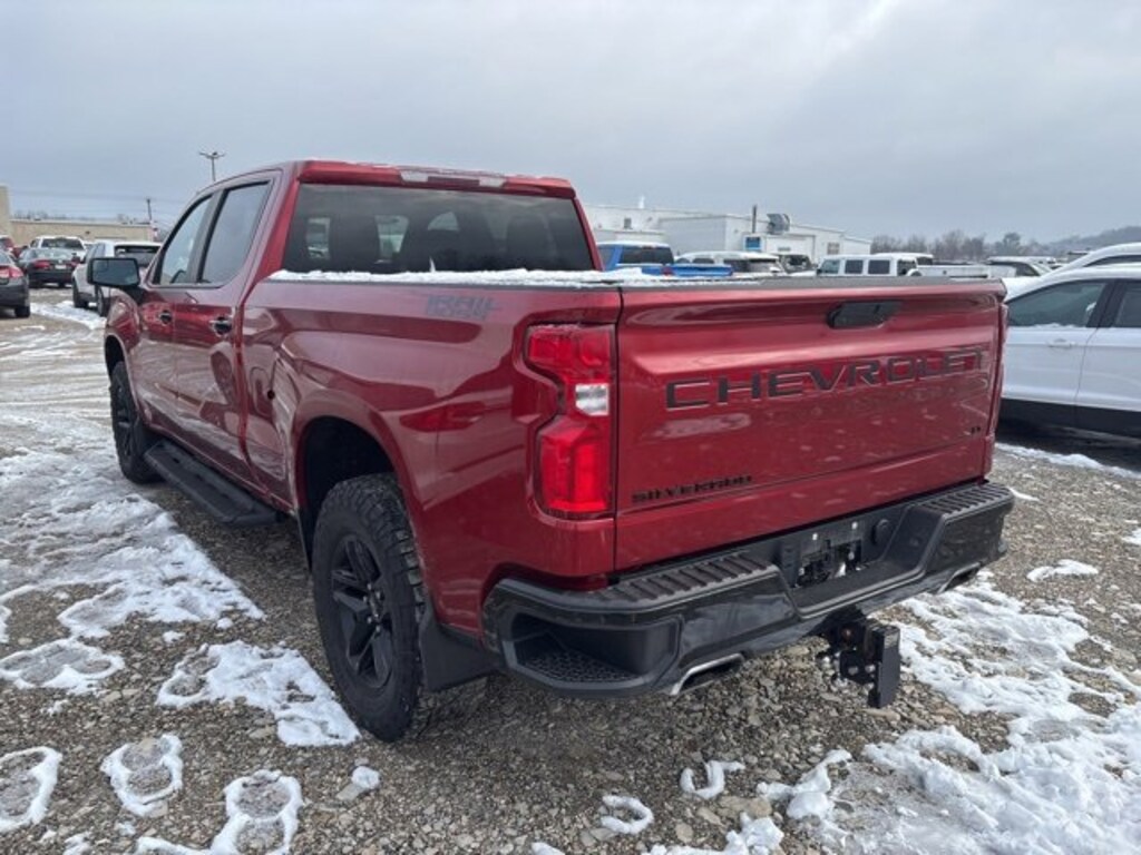 Recent Arrival! 2021 Chevrolet Silverado 1500 LT Trail Boss 4WD 10-Speed Automatic EcoTec3 6.2L V8 Cherry Red Tintcoat 10-Way Power Driver Seat w/Lumbar, 12-Volt Rear Auxiliary Power Outlet, 170 Amp Alternator, 2 USB Ports (First Row), 3.23 Rear Axle Ratio, 4-Wheel Disc Brakes, 4.2 Diagonal Color Display Driver Info Center, 4G LTE Wi-Fi Hot Spot Capable, 6 Speakers, 6-Speaker Audio System, 6 Black Tubular Assist Steps (LPO), ABS brakes, Air Conditioning, All-Weather Floor Liner (LPO) (AAK), Alloy wheels, AM/FM radio: SiriusXM, Apple CarPlay/Android Auto, Auto-Locking Rear Differential, Automatic temperature control, Auxiliary External Transmission Oil Cooler, Bed Protection Package, Black Name Plates (LPO), Black Tailgate CHEVROLET Lettering (LPO), Bluetooth® For Phone, Brake assist, Chevrolet Connected Access Capable, Chevytec Spray-On Black Bedliner, Cloth Rear Seat w/Storage Package, Cloth Seat Trim, Color-Keyed Carpeting Floor Covering, Compass, Convenience Package w/Buckets Seats, Dark Essentials Package (LPO), Deep-Tinted Glass, Delay-off headlights, Driver door bin, Driver vanity mirror, Dual Exhaust w/Polished Outlets, Dual front impact airbags, Dual front side impact airbags, Dual-Zone Automatic Climate Control, Electric Rear-Window Defogger, Electrical Lock Control Steering Column, Electronic Cruise Control, Electronic Stability Control, EZ Lift Power Lock & Release Tailgate, Floor Mounted Center Console, Front anti-roll bar, Front Bucket Seats, Front Center Armrest w/Storage, Front dual zone A/C, Front fog lights, Front LED Fog Lamps, Front License Plate Kit, Front reading lights, Front wheel independent suspension, Fully automatic headlights, Heated door mirrors, Heated Driver & Front Outboard Passenger Seats, Heated front seats, Heated Steering Wheel, Heated steering wheel, Heavy-Duty Air Filter, High Gloss Black Grille, High Gloss Black Mirror Caps, Hill Descent Control, Hitch Guidance, Illuminated entry, Integrated Trailer Brake Controller, Keyless Open & Start, Leather Wrapped Steering Wheel, LED Cargo Area Lighting, LED Reflector Headlamps, Low tire pressure warning, Manual Tilt/Telescoping Steering Column, Not Equipped w/Automatic Stop/Start, Occupant sensing airbag, Off-Road Suspension w/2 Lift, OnStar & Chevrolet Connected Services Capable, Outside temperature display, Overhead airbag, Overhead console, Panic alarm, Passenger door bin, Passenger vanity mirror, Performance Red Recovery Hooks, Power Door Locks, Power door mirrors, Power driver seat, Power Front Windows w/Driver Express Up/Down, Power Front Windows w/Passenger Express Down, Power Rear Windows w/Express Down, Power steering, Power windows, Preferred Equipment Group 2LT, Premium audio system: Chevrolet Infotainment 3, Radio data system, Radio: Chevrolet Infotainment 3 System, Rear Dual USB Charging-Only Ports, Rear reading lights, Rear seat center armrest, Rear step bumper, Rear Vision Camera, Rear Wheelhouse Liners, Rear window defroster, Remote keyless entry, Remote Vehicle Starter System, Security system, SiriusXM Radio, Speed control, Speed-sensing steering, Split folding rear seat, Standard Tailgate, Steering Wheel Audio Controls, Steering wheel mounted audio controls, Suspension Package, Tachometer, Telescoping steering wheel, Theft Deterrent System (Unauthorized Entry), Tilt steering wheel, Traction control, Trailering Package, Trip computer, Variably intermittent wipers, Voltmeter, Wheels: 18 x 8.5 Black Painted Aluminum. Odometer is 5507 miles below market average!