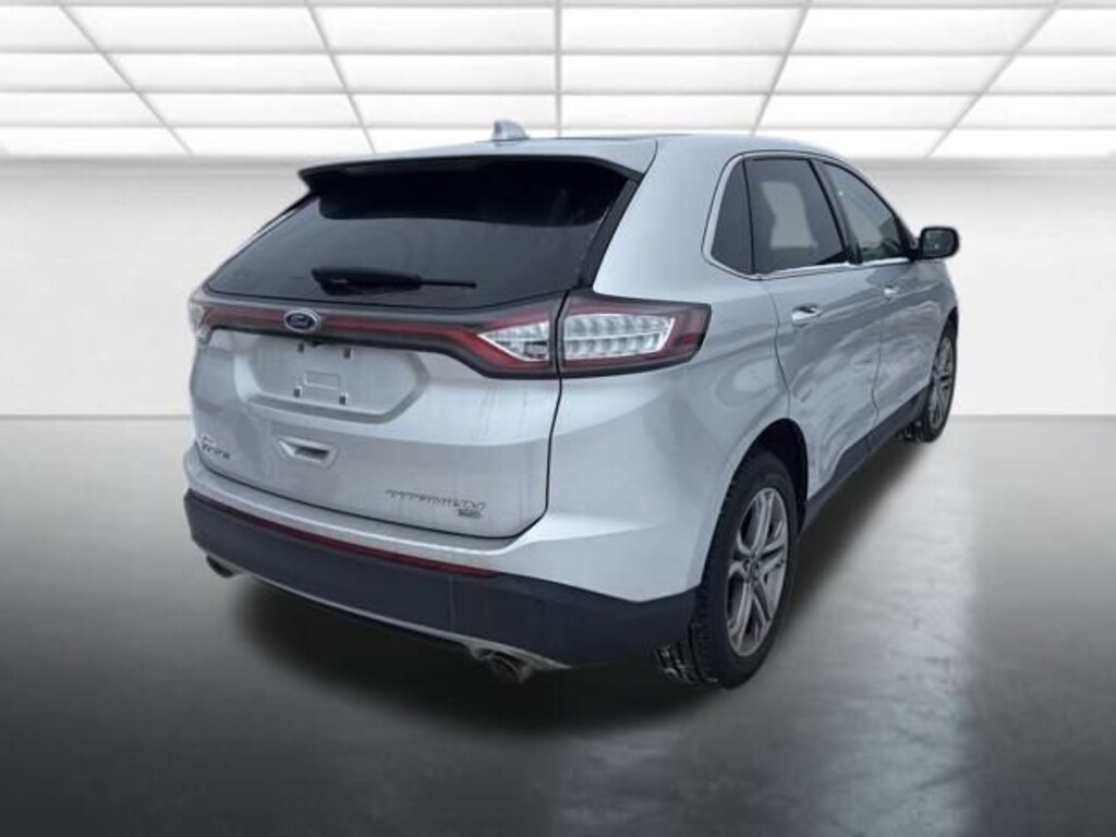 Recent Arrival! 2017 Ford Edge Titanium AWD 6-Speed Automatic 3.5L V6 Ti-VCT Ingot Silver Metallic 110V/400W AC Power Outlet, 12 Speakers, 4-Wheel Disc Brakes, ABS brakes, Air Conditioning, Alloy wheels, AM/FM radio: SiriusXM, AM/FM Stereo w/Single CD Player, Auto-Dimming Driver's Sideview Mirror, Auto-dimming Rear-View mirror, Automatic temperature control, Axle Ratio: TBD, BLIS Blind Spot Information System, Brake assist, Bumpers: body-color, CD player, Compass, Delay-off headlights, Driver door bin, Driver vanity mirror, Dual front impact airbags, Dual front side impact airbags, Electronic Stability Control, Emergency communication system: SYNC 3 911 Assist, Equipment Group 301A, Exterior Parking Camera Rear, Four wheel independent suspension, Front anti-roll bar, Front Bucket Seats, Front Center Armrest w/Storage, Front dual zone A/C, Front reading lights, Fully automatic headlights, Garage door transmitter, Heated door mirrors, Heated front seats, Heated Rear-Seats, Illuminated entry, Knee airbag, Leather Shift Knob, Leather-Trimmed Heated Sport Bucket Seats, Low tire pressure warning, Memory seat, Navigation System, Occupant sensing airbag, Outside temperature display, Overhead airbag, Overhead console, Panic alarm, Panoramic Vista Roof, Passenger door bin, Passenger vanity mirror, Perforated Leather Trimmed Heated/Cooled Buckets, Power door mirrors, Power driver seat, Power Liftgate, Power passenger seat, Power steering, Power windows, Premium audio system: Sony, Radio: AM/FM Stereo w/Single CD/Navigation, Rear anti-roll bar, Rear Parking Sensors, Rear reading lights, Rear seat center armrest, Rear window defroster, Rear window wiper, Remote keyless entry, Remote Start System, Security system, SiriusXM Radio, SiriusXM Traffic & Travel Link, Speed control, Speed-Sensitive Wipers, Split folding rear seat, Spoiler, Steering wheel mounted audio controls, SYNC 3, Tachometer, Technology Package, Telescoping steering wheel, Tilt steering wheel, Traction control, Trip computer, Turn signal indicator mirrors, Variably intermittent wipers, Wheels: 19 Nickel-Painted Aluminum. Odometer is 23832 miles below market average!