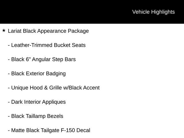 Recent Arrival! 2023 Ford F-150 Lariat 4WD 10-Speed Automatic 2.7L V6 EcoBoost Agate Black Metallic 2nd Row Heated Seats, 3.55 Axle Ratio, 8 Speakers, ABS brakes, Accent-Color Angular Step Bars, Adjustable pedals, Air Conditioning, Alloy wheels, AM/FM radio: SiriusXM with 360L, Auto-dimming door mirrors, Auto-dimming Rear-View mirror, Automatic temperature control, Black 6 Angular Step Bars, Black Exterior Badging, Black Taillamp Bezels, Body-Color Front & Rear Bumpers, Box Side Decals, Bumpers: chrome, Chrome Single-Tip Exhaust, Class IV Trailer Hitch Receiver, Compass, Connected Built-In Navigation, Dark 2-Bar & 1 Minor Bar Style Grille, Dark Interior Appliques, Driver door bin, Driver vanity mirror, Electronic Stability Control, Equipment Group 502A High, Evasive Steering Assist, Ford Co-Pilot360 Assist 2.0, Front dual zone A/C, Front reading lights, Garage door transmitter, GVWR: 6,600 lbs Payload Package, Heated door mirrors, Heated front seats, Heated steering wheel, Illuminated entry, Integrated Trailer Brake Controller, Intelligent Adaptive Cruise Control w/Stop & Go, Intersection Assist, Lariat Black Appearance Package, Lariat Sport Appearance Package, Leather-Trimmed Bucket Seats, LED Projector w/Dynamic Bending Headlamps, Low tire pressure warning, Matte Black Tailgate F-150 Decal, Outside temperature display, Overhead console, Passenger vanity mirror, Power door mirrors, Power Tilt/Telescoping Steering Column w/Memory, Pro Trailer Backup Assist & Pro Trailer Hitch Assist, Radio data system, Radio: B&O Sound System by Bang & Olufsen, Rain-Sensing Wipers, Rear reading lights, Rear seat center armrest, Rear step bumper, Remote keyless entry, Speed Sign Recognition, SYNC 4 w/Enhanced Voice Recognition, Traction control, Trailer Tow Package, Turn signal indicator mirrors, Unique Hood & Grille w/Black Accent, Wheels: 20 Gloss Black Painted Aluminum, Wireless Charging Pad. Odometer is 8757 miles below market average!