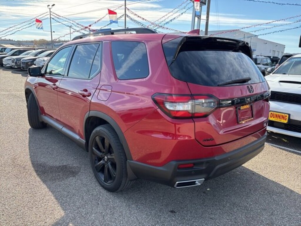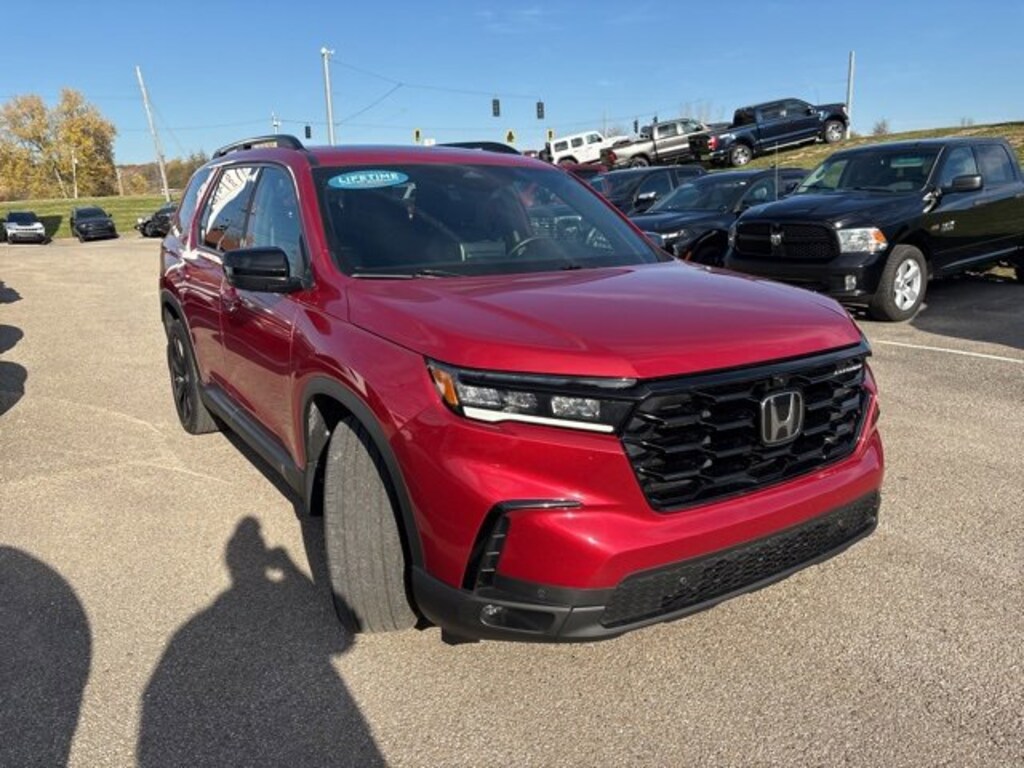 Recent Arrival! 2023 Honda Pilot Elite AWD 10-Speed Automatic 3.5L V6 DOHC 24V Radiant Red Metallic II 12 Speakers, 3rd row seats: split-bench, 4-Wheel Disc Brakes, ABS brakes, Adaptive Cruise Control: Adaptive Cruise Control (ACC) with Low-Speed Follow, Air Conditioning, Alloy wheels, AM/FM radio: SiriusXM, Apple CarPlay/Android Auto, Auto High-beam Headlights, Auto-dimming door mirrors, Auto-dimming Rear-View mirror, Automatic temperature control, Axle Ratio: 4.167, Blind Spot Information (BSI) System warning, Bose Premium Sound System, Brake assist, Bumpers: body-color, Compass, Delay-off headlights, Driver door bin, Driver vanity mirror, Dual front impact airbags, Dual front side impact airbags, Electronic Stability Control, Emergency communication system: HondaLink, Four wheel independent suspension, Front anti-roll bar, Front Bucket Seats, Front Center Armrest, Front dual zone A/C, Front fog lights, Front reading lights, Fully automatic headlights, Garage door transmitter: HomeLink, Heads-Up Display, Heated & Ventilated Front Bucket Seats, Heated door mirrors, Heated front seats, Heated rear seats, Heated steering wheel, Illuminated entry, Knee airbag, Lane departure: Lane Keeping Assist System (LKAS) active, Low tire pressure warning, Memory seat, Navigation system: Honda Satellite-Linked Navigation System, Occupant sensing airbag, Outside temperature display, Overhead airbag, Overhead console, Panic alarm, Passenger door bin, Passenger vanity mirror, Perforated Leather Seat Trim, Power door mirrors, Power driver seat, Power Liftgate, Power moonroof, Power passenger seat, Power steering, Power windows, Radio data system, Rain sensing wipers, Rear air conditioning, Rear anti-roll bar, Rear reading lights, Rear seat center armrest, Rear window defroster, Rear window wiper, Reclining 3rd row seat, Remote keyless entry, Security system, Speed control, Speed-sensing steering, Speed-Sensitive Wipers, Split folding rear seat, Spoiler, Steering wheel mounted audio controls, Tachometer, Telescoping steering wheel, Tilt steering wheel, Traction control, Trip computer, Turn signal indicator mirrors, Variably intermittent wipers, Ventilated front seats, Wheels: 20 Machine Face Shark Gray w/Blk Lug Nuts. Odometer is 8021 miles below market average!