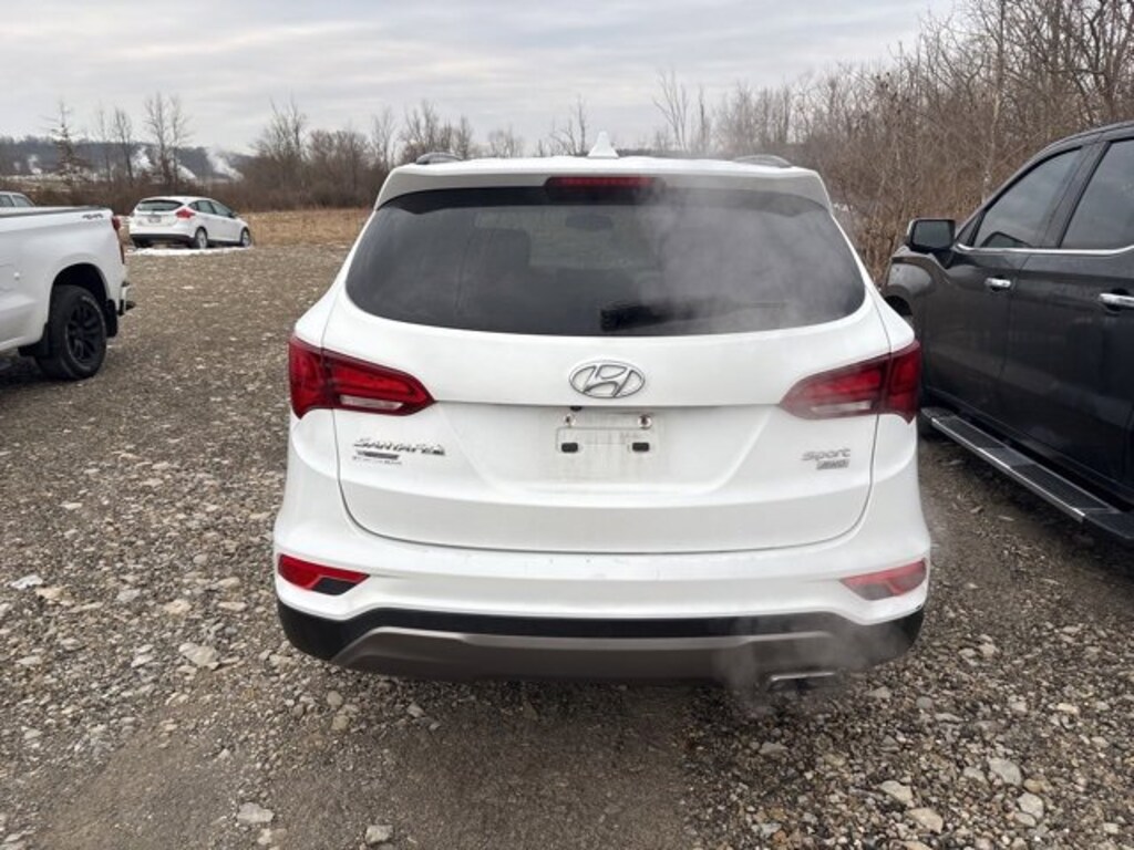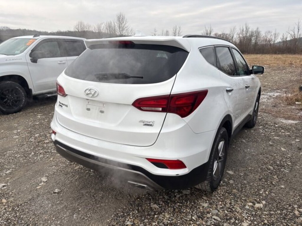 Recent Arrival! 2018 Hyundai Santa Fe Sport 2.4 Base AWD 6-Speed Automatic with Shiftronic 2.4L I4 DGI DOHC 16V Pearl White 17 x 7 Alloy Wheels, 2.4L Value Package 02, 4-Wheel Disc Brakes, 6 Speakers, ABS brakes, Air Conditioning, Alloy wheels, AM/FM radio, AM/FM/CD/MP3 Audio System, Axle Ratio 3.648, Brake assist, Bumper Applique, Bumpers: body-color, Cargo Net, Cargo Tray, Carpeted Floor Mats, CD player, Delay-off headlights, Driver door bin, Driver vanity mirror, Dual front impact airbags, Dual front side impact airbags, Dual Zone Automatic Temperature Control, Electronic Stability Control, Exterior Parking Camera Rear, Fog Lights, Four wheel independent suspension, Front anti-roll bar, Front Bucket Seats, Front Center Armrest, Front reading lights, Fully automatic headlights, Heated Dual Power Side Mirrors, Heated Front Seats, Illuminated entry, Knee airbag, LED Daytime Running Lights, Low tire pressure warning, Occupant sensing airbag, Option Group 02, Outside temperature display, Overhead airbag, Overhead console, Panic alarm, Passenger door bin, Passenger vanity mirror, Power door mirrors, Power Driver Seat w/Lumbar Support, Power steering, Power windows, Power Windows w/Front Auto Up/Down, Proximity Key Entry w/Push Button Start, Radio: AM/FM/SiriusXM/CD/HD/MP3 Display Audio, Rear anti-roll bar, Rear seat center armrest, Rear window defroster, Rear window wiper, Remote keyless entry, Roof Side Rails, Security system, Speed control, Speed-sensing steering, Split folding rear seat, Spoiler, Stain-Resistant Cloth Seating Surfaces, Steering wheel mounted audio controls, Tachometer, Telescoping steering wheel, Tilt steering wheel, Traction control, Trip computer, Variably intermittent wipers. 20/26 City/Highway MPG Odometer is 5239 miles below market average!
