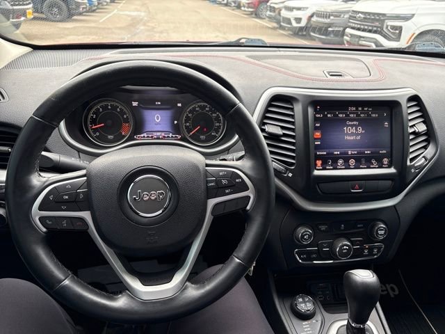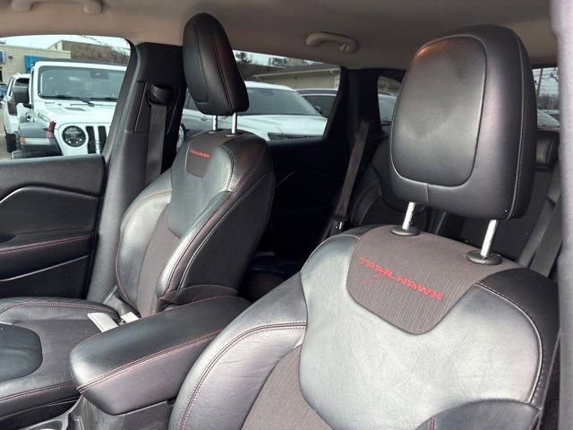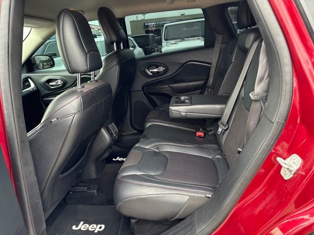 The Trailhawk trim takes the Cherokee's off-road capabilities to the next level, with features like an off-road suspension, skid plates, and traction control that will have you tackling the toughest trails with confidence. Inside, the premium cloth low-back bucket seats and split-folding rear seat provide both comfort and versatility, while the Jeep's impressive 25 MPG highway fuel efficiency ensures you can go the distance.