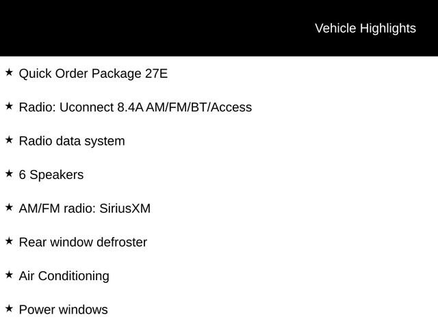 - 6 speakers, AM/FM radio with SiriusXM, Uconnect 8.4A infotainment system