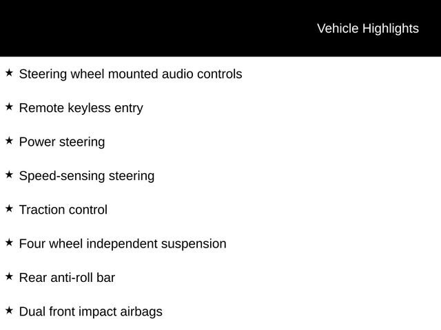 - Air conditioning, power windows, remote keyless entry, and steering wheel-mounted audio controls