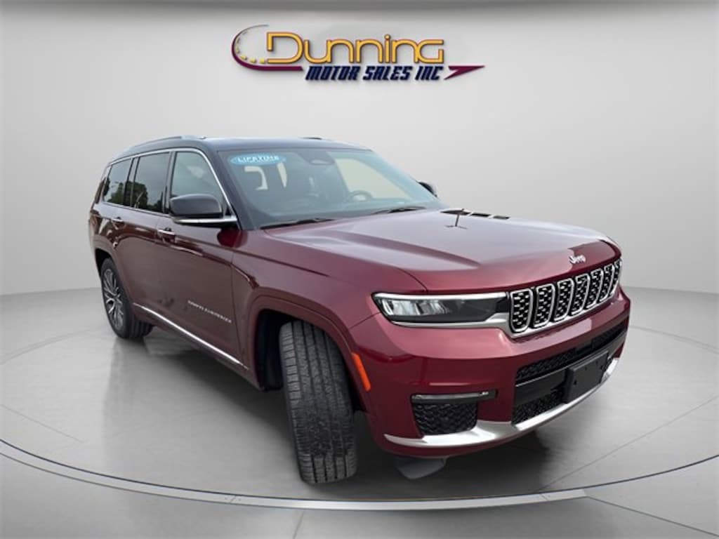 Recent Arrival! 2021 Jeep Grand Cherokee L Summit 4WD 8-Speed Automatic HEMI 5.7L V8 Multi Displacement VVT Velvet Red Pearlcoat 10 Speakers, 19 Speakers High Performance Audio, 2nd Row Manual Window Shades, 3.45 Rear Axle Ratio, 3rd row seats: split-bench, 4-Wheel Disc Brakes, ABS brakes, Active Noise Control System, Adaptive suspension, Advanced Protech Group IV, Air Conditioning, Alloy wheels, AM/FM radio: SiriusXM w/360L, Anti-whiplash front head restraints, Apple CarPlay/Android Auto, Audio memory, Auto High-beam Headlights, Auto-dimming door mirrors, Auto-dimming Rear-View mirror, Auto-leveling suspension, Automatic temperature control, Brake assist, Bumpers: body-color, Compass, Delay-off headlights, Driver door bin, Driver vanity mirror, Dual front impact airbags, Dual front side impact airbags, Electronic Stability Control, Emergency communication system, Four wheel independent suspension, Front anti-roll bar, Front Bucket Seats, Front Center Armrest w/Storage, Front dual zone A/C, Front fog lights, Front reading lights, Fully automatic headlights, Garage door transmitter, Genuine wood dashboard insert, Genuine wood door panel insert, Heads-Up Display, Heated door mirrors, Heated front seats, Heated rear seats, Heated steering wheel, Illuminated entry, Interior Rear Facing Camera, Knee airbag, Leather steering wheel, Low tire pressure warning, Luxury Tech Group V, Memory seat, Nappa Leather Seats, Navigation System, Night Vision/Pedestrian-Animal Detection, Normal Duty Suspension, Occupant sensing airbag, Outside temperature display, Overhead airbag, Overhead console, Panic alarm, Passenger door bin, Passenger vanity mirror, Power door mirrors, Power driver seat, Power Fold Seatbacks, Power Liftgate, Power moonroof: CommandView, Power passenger seat, Power steering, Power windows, Radio data system, Radio: Uconnect 5 Nav w/10.1 Display, Rain sensing wipers, Rear air conditioning, Rear anti-roll bar, Rear dual zone A/C, Rear reading lights, Rear seat center armrest, Rear window defroster, Rear window wiper, Rearview Autodim Digital Display Mirror, Reclining 3rd row seat, Remote keyless entry, Roof rack: rails only, Security system, Speed control, Speed-Sensitive Wipers, Split folding rear seat, Spoiler, Steering wheel memory, Steering wheel mounted audio controls, Tachometer, Telescoping steering wheel, Tilt steering wheel, Traction control, Trip computer, Turn signal indicator mirrors, Two Tone Paint Group, Variably intermittent wipers, Ventilated front seats, Voltmeter, Wheels: 20 x 8.5 Fully Polished Aluminum, Wireless Charging Pad. Odometer is 13272 miles below market average!
