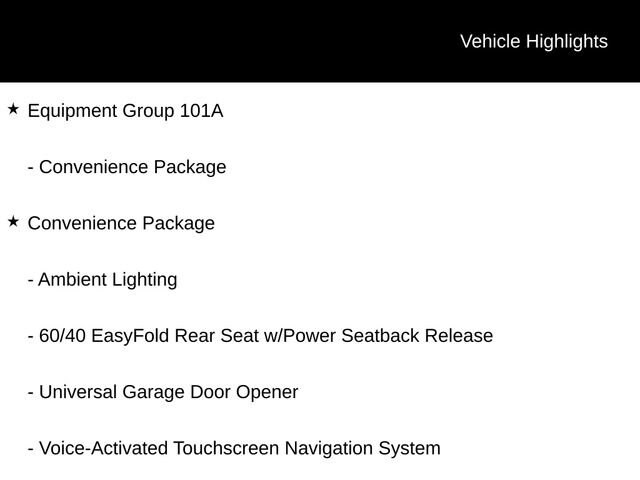 Elevate your driving experience with the Convenience Package, Elements Package, and Equipment Group 101A, which provide a wealth of premium features designed to make every journey more enjoyable. Indulge in the comfort of heated and ventilated front seats, while the 60/40 EasyFold Rear Seat with Power Seatback Release ensures versatility and convenience.